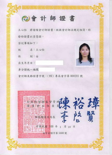 ◎個人擁有記帳士證書(95)台財稅証字第00266號。